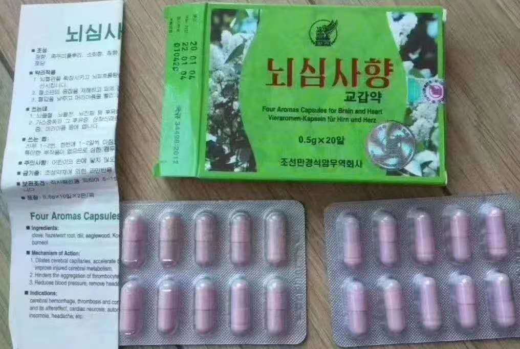 脑心四香是一款人们千百年来用以开窍醒脑的朝鲜名药,脑心四香因其疗效得到很好的证明,因此自古以来一直被视高丽药学中的瑰宝。“脑心四香”(又译作脑心麝香)由朝鲜万景石岩株式制药厂会社研制。